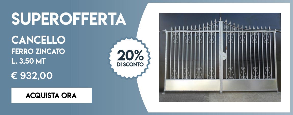 Homeadmin2022-04-21T09:48:59+02:00 ULTIMI PRODOTTI Hai appena aggiunto questo prodotto al carrello:Cancello Mod. C17 Pedonale - 1,00 mt Vai alla pagina del carrello Continua Aggiungi al carrello Cancello Mod. C17 Pedonale – 1,00 mt 561,00 € Aggiungi al carrello Hai appena aggiunto questo prodotto al carrello:Cancello Mod. C17 - 4,00 mt Vai alla pagina del carrello Continua Aggiungi al carrello Cancello Mod. C17 – 4,00 mt 1.598,00 € Aggiungi al carrello Hai appena aggiunto questo prodotto al carrello:Cancello Mod. C17 - 3,50 mt Vai alla pagina del carrello Continua Aggiungi al carrello Cancello Mod. C17 – 3,50 mt 1.464,00 € Aggiungi al carrello Hai appena aggiunto questo prodotto al carrello:Cancello Mod. C17 - 3,00 mt Vai alla pagina del carrello Continua Aggiungi al carrello Cancello Mod. C17 – 3,00 mt 1.366,00 € Aggiungi al carrello Hai appena aggiunto questo prodotto al carrello:Recinzione R4 - L.2000mm x A.932mm Vai alla pagina del carrello Continua Aggiungi al carrello Recinzione R4 – L.2000mm x A.932mm 93,68 € Aggiungi al carrello Hai appena aggiunto questo prodotto al carrello:Recinzione R4 - L.2000mm x A.1988mm Vai alla pagina del carrello Continua Aggiungi al carrello Recinzione R4 – L.2000mm x A.1988mm 140,00 € Aggiungi al carrello OFFERTE Hai appena aggiunto questo prodotto al carrello:Recinzione R4 - L.2000mm x A.932mm Vai alla pagina del carrello Continua Aggiungi al carrello Recinzione R4 – L.2000mm x A.932mm 93,68 € Aggiungi al carrello Hai appena aggiunto questo prodotto al carrello:Colonna C150 Vai alla pagina del carrello Continua Aggiungi al carrello Colonna C150 189,00 € Aggiungi al carrello Hai appena aggiunto questo prodotto al carrello:Cancello Mod. C13 Pedonale - 1,00 mt Vai alla pagina del carrello Continua Aggiungi al carrello Cancello Mod. C13 Pedonale – 1,00 mt 403,00 € Aggiungi al carrello Hai appena aggiunto questo prodotto al carrello:Cancello Mod. C9 - 4,00 mt Vai alla pagina del carrello Continua Aggiungi al carrello Cancello Mod. C9 – 4,00 mt 1.021,00 € Aggiungi al carrello I PIÙ VENDUTI Hai appena aggiunto questo prodotto al carrello:Recinzione R4 - L.2000mm x A.932mm Vai alla pagina del carrello Continua Aggiungi al carrello Recinzione R4 – L.2000mm x A.932mm 93,68 € Aggiungi al carrello Hai appena aggiunto questo prodotto al carrello:Colonna C150 Vai alla pagina del carrello Continua Aggiungi al carrello Colonna C150 189,00 € Aggiungi al carrello Hai appena aggiunto questo prodotto al carrello:Cancello Mod. C13 Pedonale - 1,00 mt Vai alla pagina del carrello Continua Aggiungi al carrello Cancello Mod. C13 Pedonale – 1,00 mt 403,00 € Aggiungi al carrello Hai appena aggiunto questo prodotto al carrello:Cancello Mod. C9 - 4,00 mt Vai alla pagina del carrello Continua Aggiungi al carrello Cancello Mod. C9 – 4,00 mt 1.021,00 € Aggiungi al carrello Hai bisogno di informazioni o assistenza? CONTATTACI